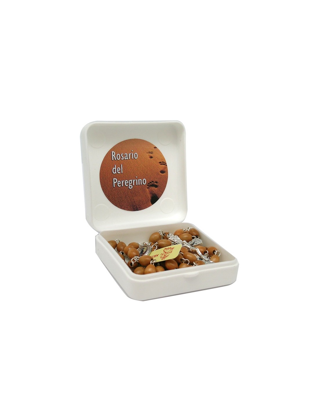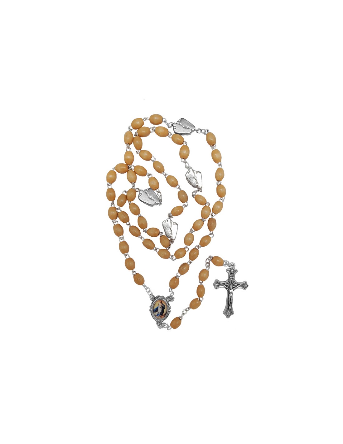 Rosario Madera Oval 8X6mm Del Peregrino Con Dos Pies En Los Paters