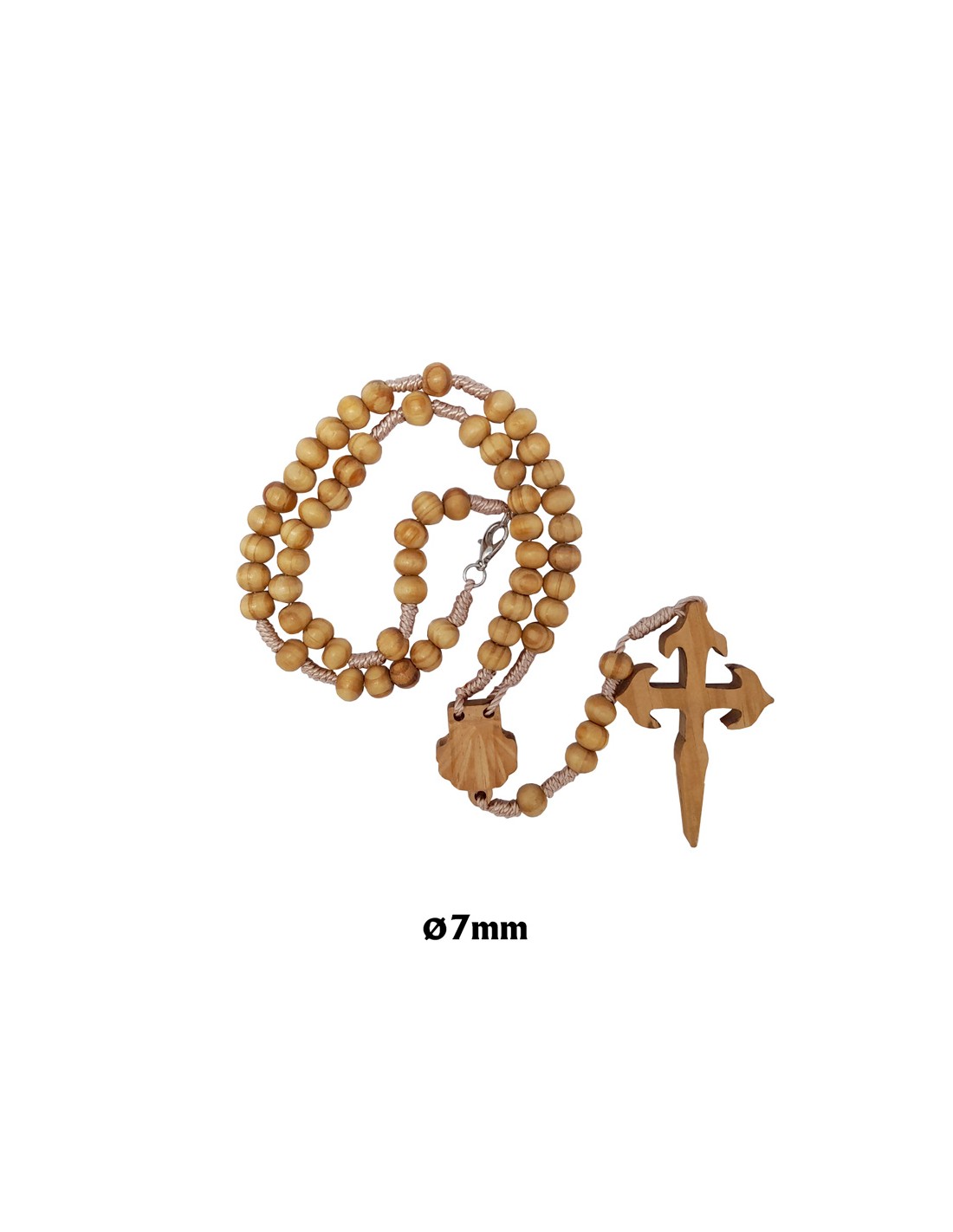 Rosario Madera Tipo Olivo 8Mm Cruz Santiago Y Maria De Concha Con Cuerda