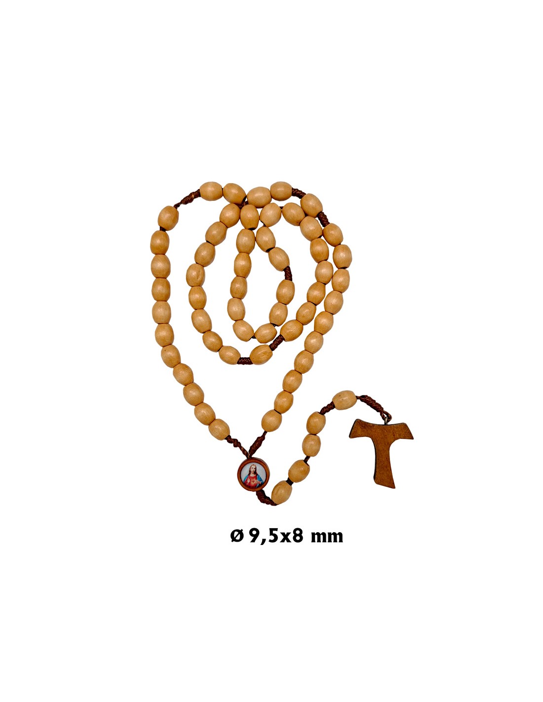 Rosario Madera Y Cuerda Oval 10X8mm Con Cruz Tau Madera