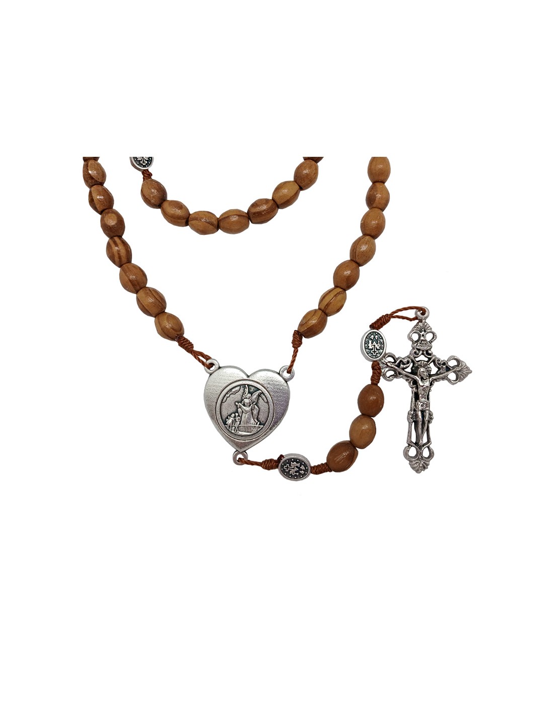 Rosario Madera Olivo Oval 10X8mm San Miguel Y Angel Guarda Maria Forma Corazon Y Paters