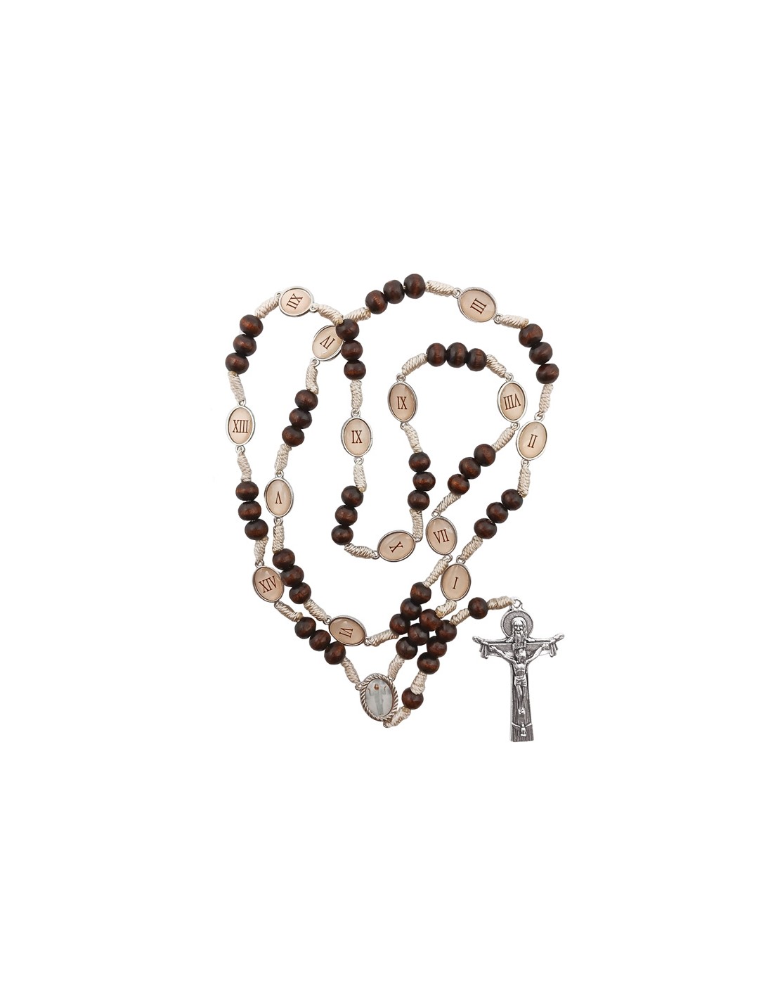 Rosario Madera Y Cuerda Via Crucis 8Mm Medallas Foto