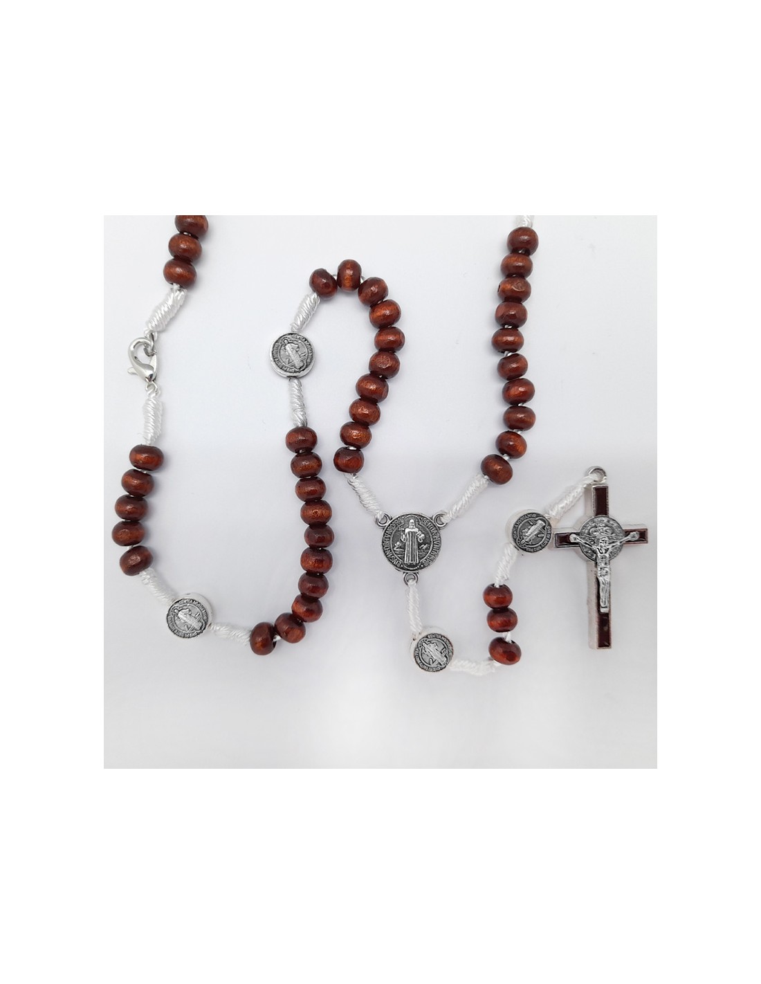 Rosario San Benito Madera Marron 6X4mm Y Cuerda Con Paters Y Cruz San Benito Mosqueton