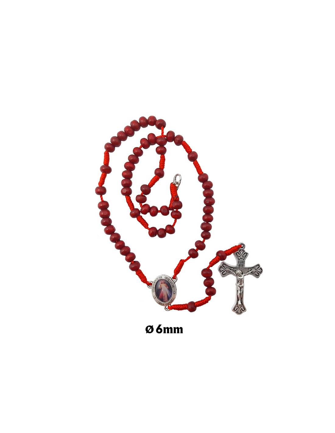 Rosario Madera Rojo 6Mm Y Cuerda Roja...