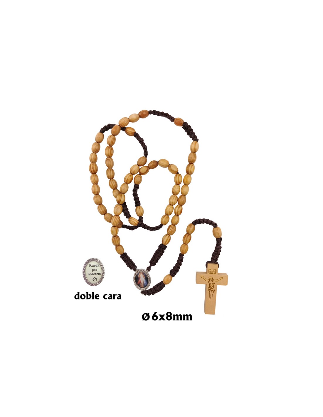 Rosario Madera Tipo Olivo 8X6mm Y Cuerda Cruz Grabada