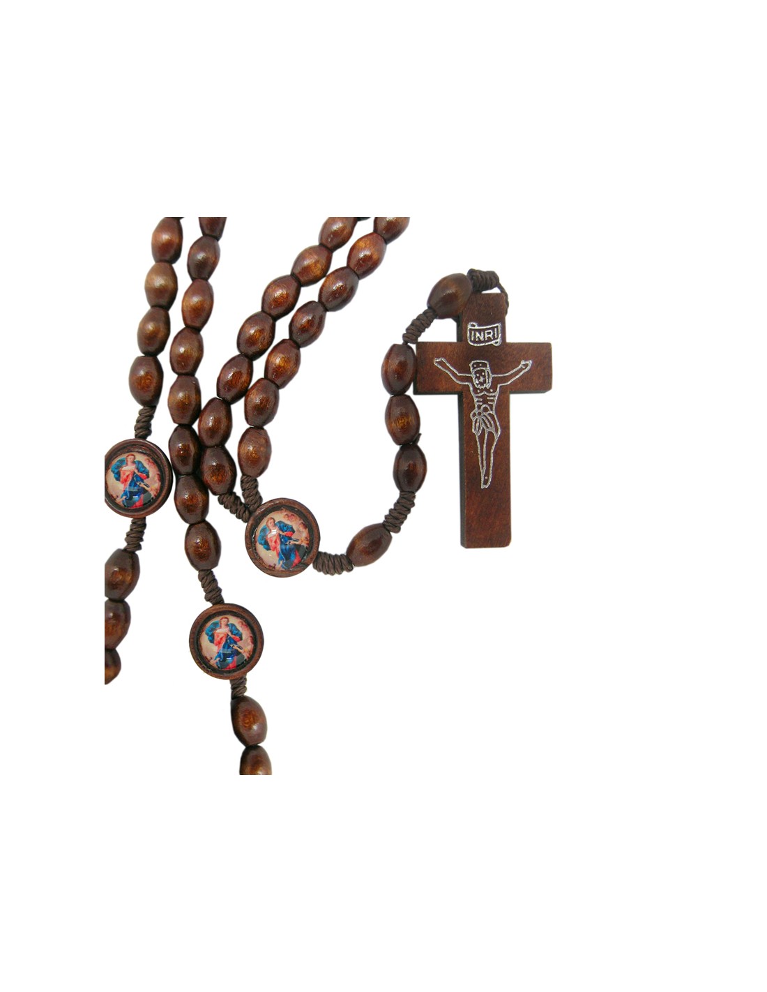 Rosario Madera Ovalado 6Mm Virgen Desatanudos En Caja Serigrafiada