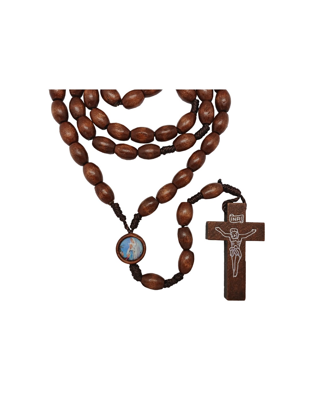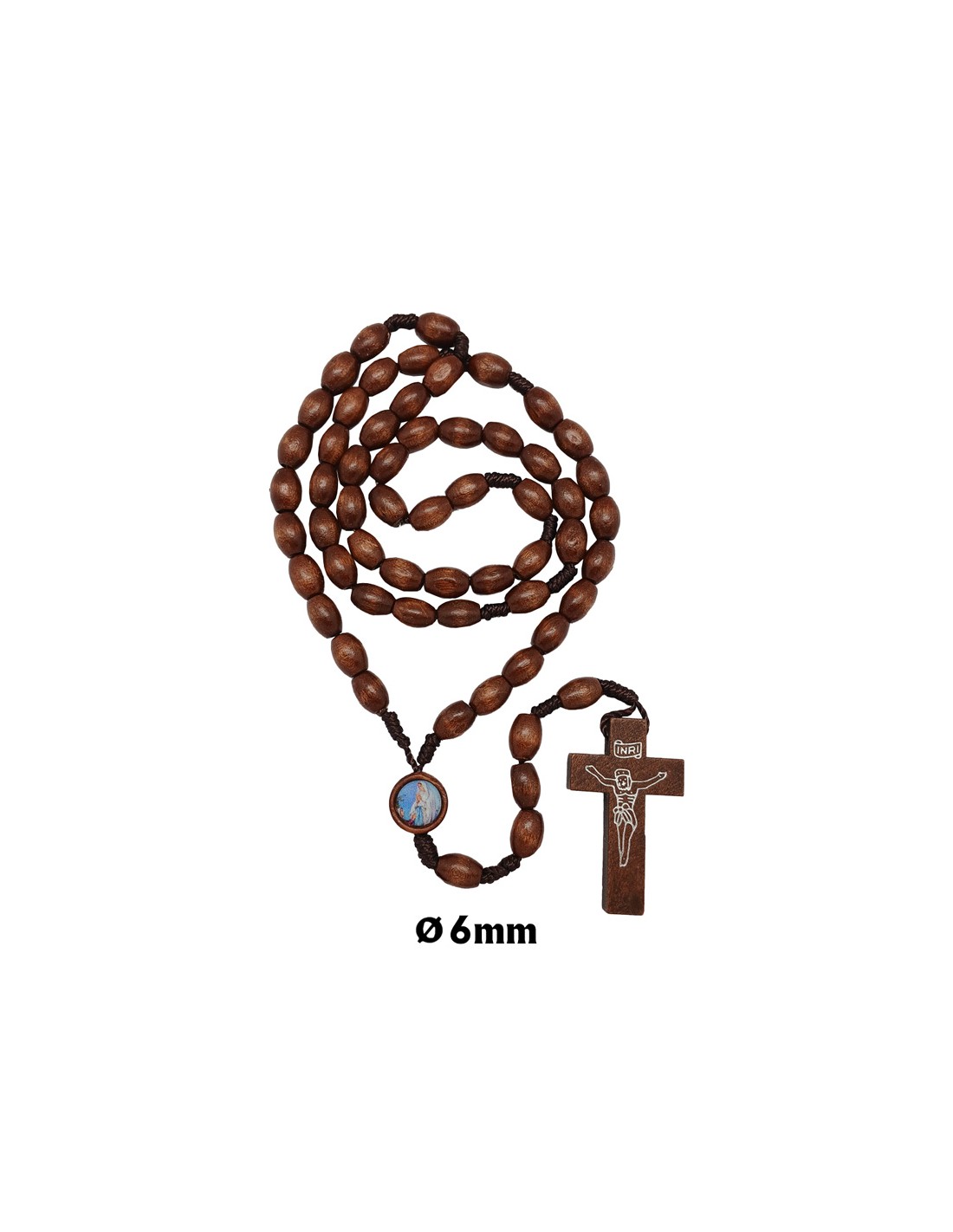Rosario Madera Y Cuerda Oval 9X7mm Con Cristo Serigrafiado