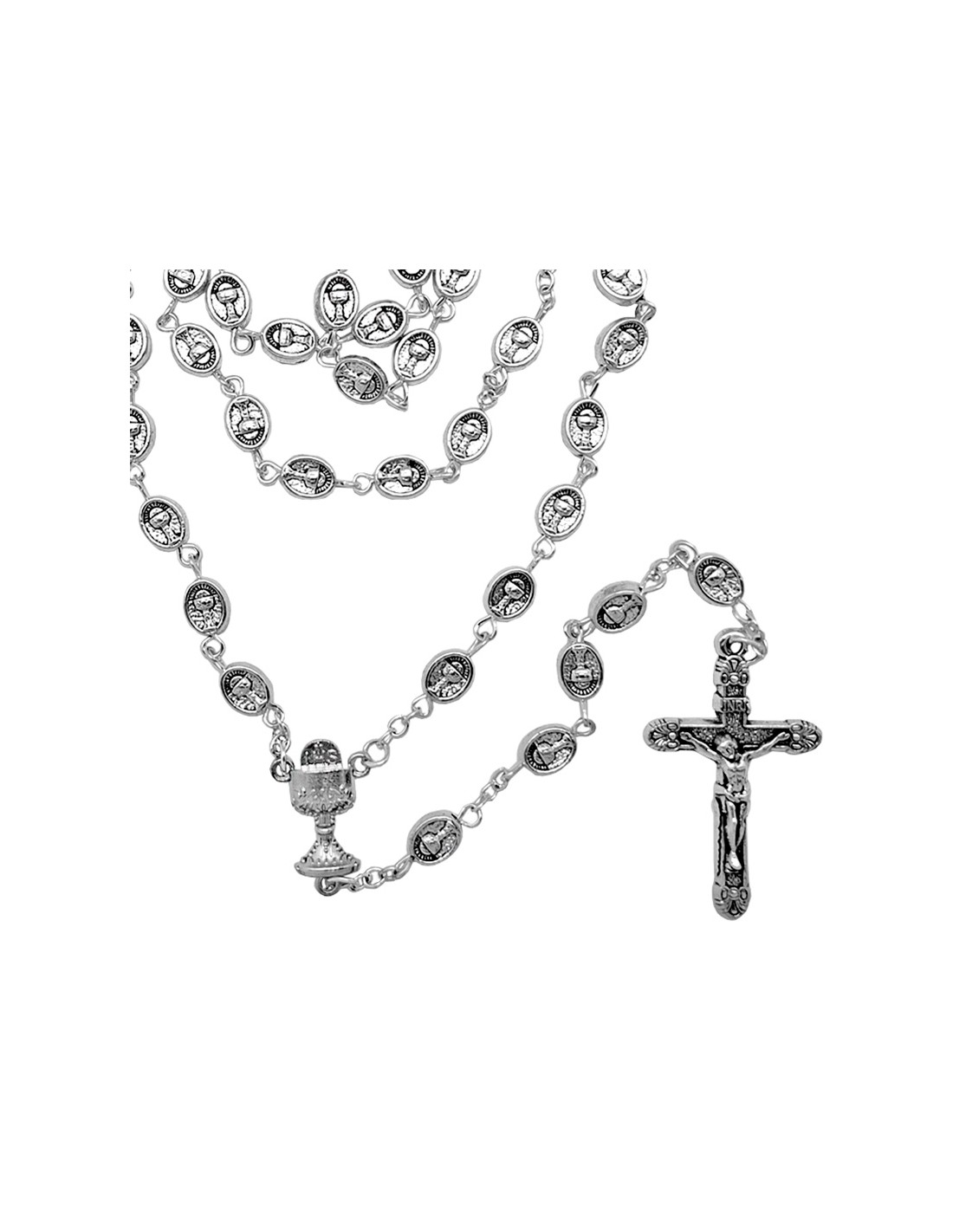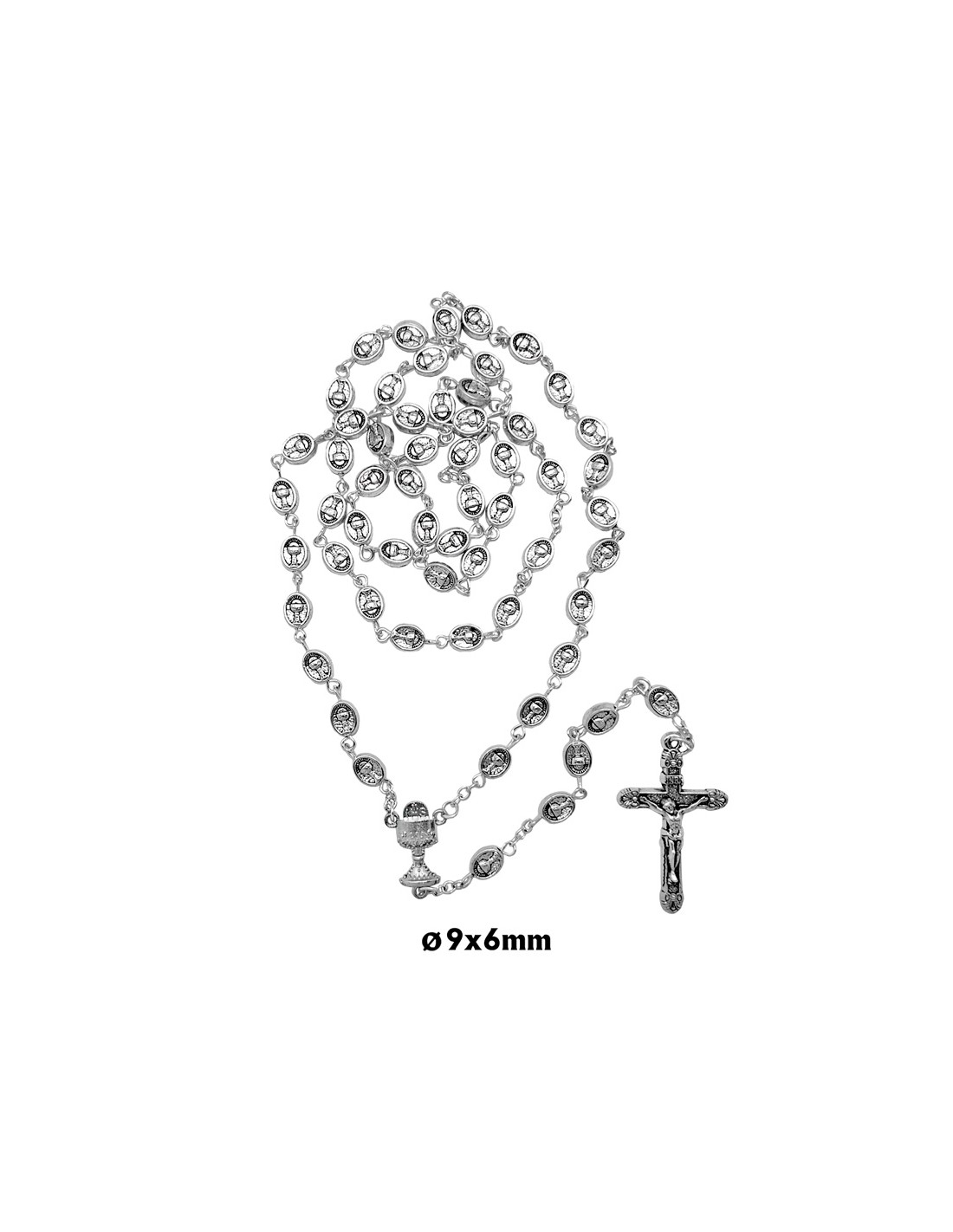 Rosario Metal Oval Primera Comunion 10X5mm Caliz Y Jhs