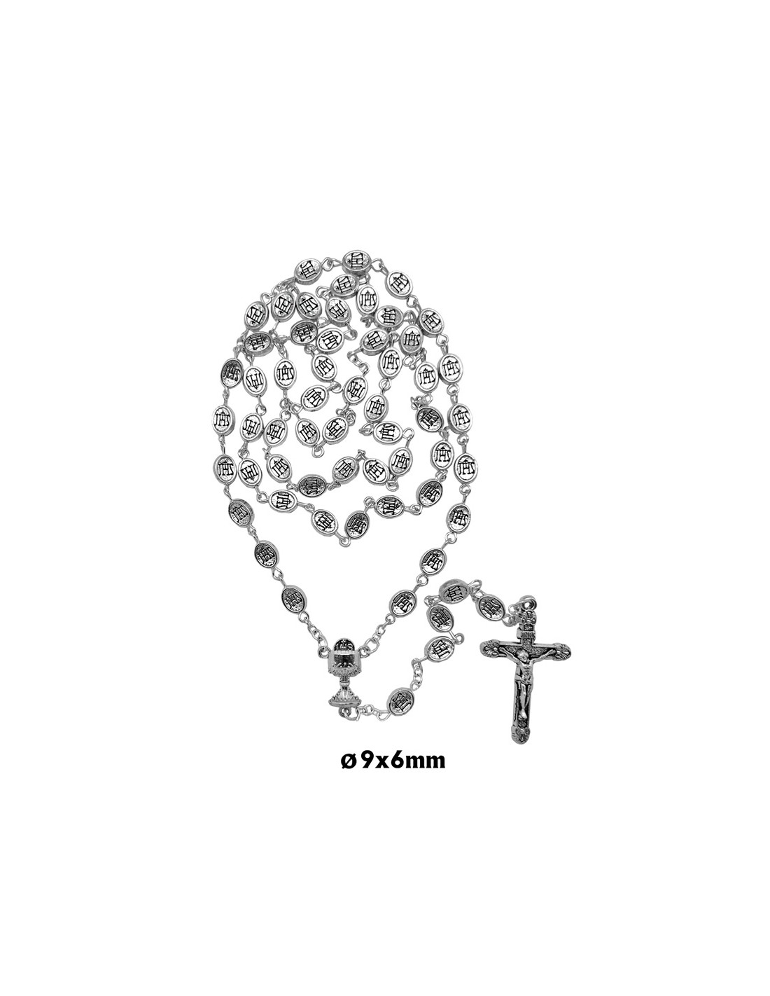 Rosario Metal Oval Primera Comunion 10X5mm Caliz Y Jhs