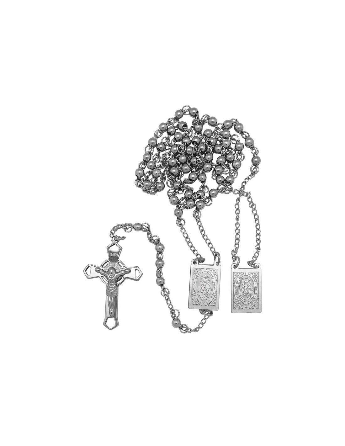 Rosario Acero Escapulario 4Mm Con Medallas 2X1.4Cm Cruz Picos Grabada Laser San Benito