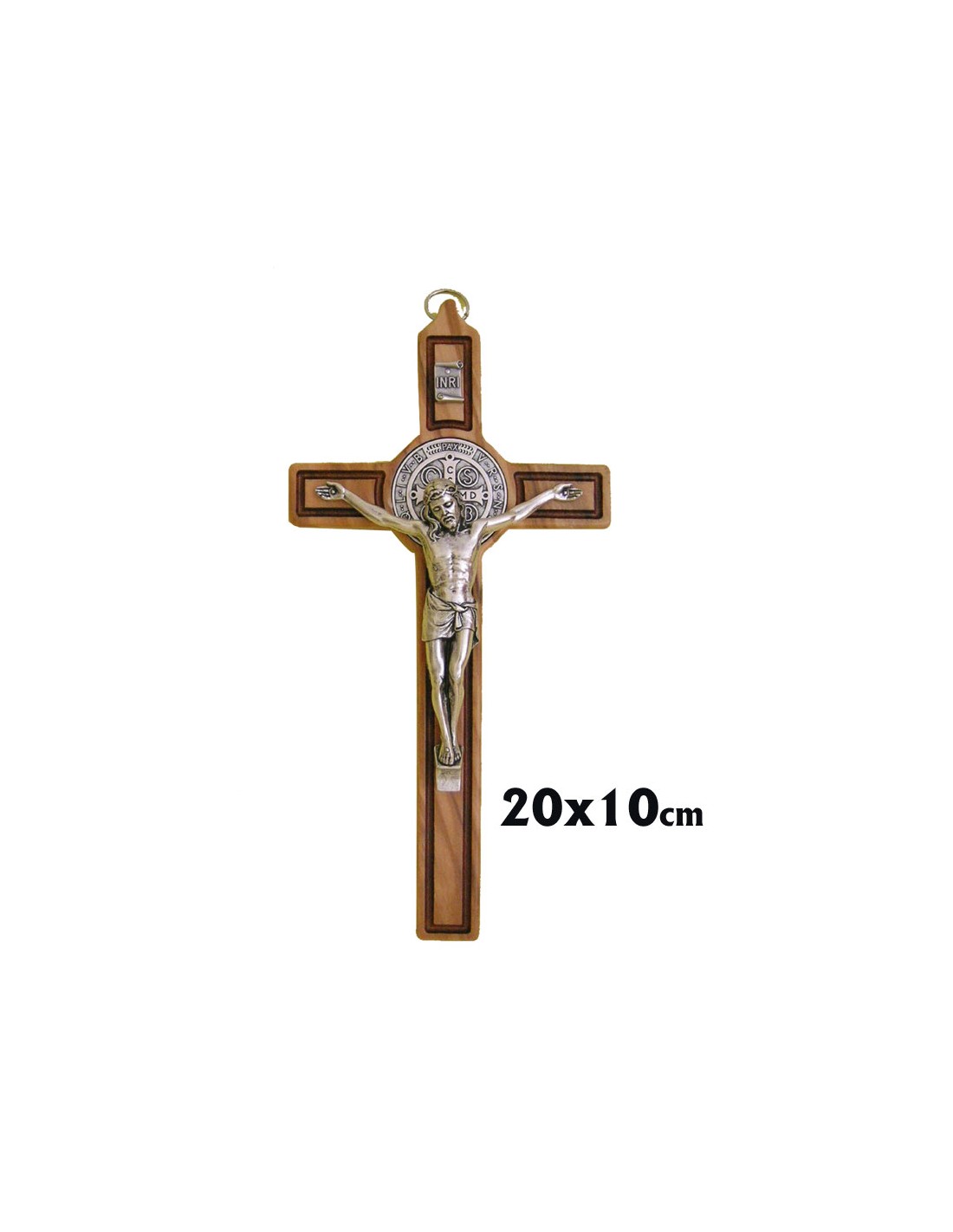 Cruz San Benito Madera 20X10cm Con Medalla Y Cristo Metal