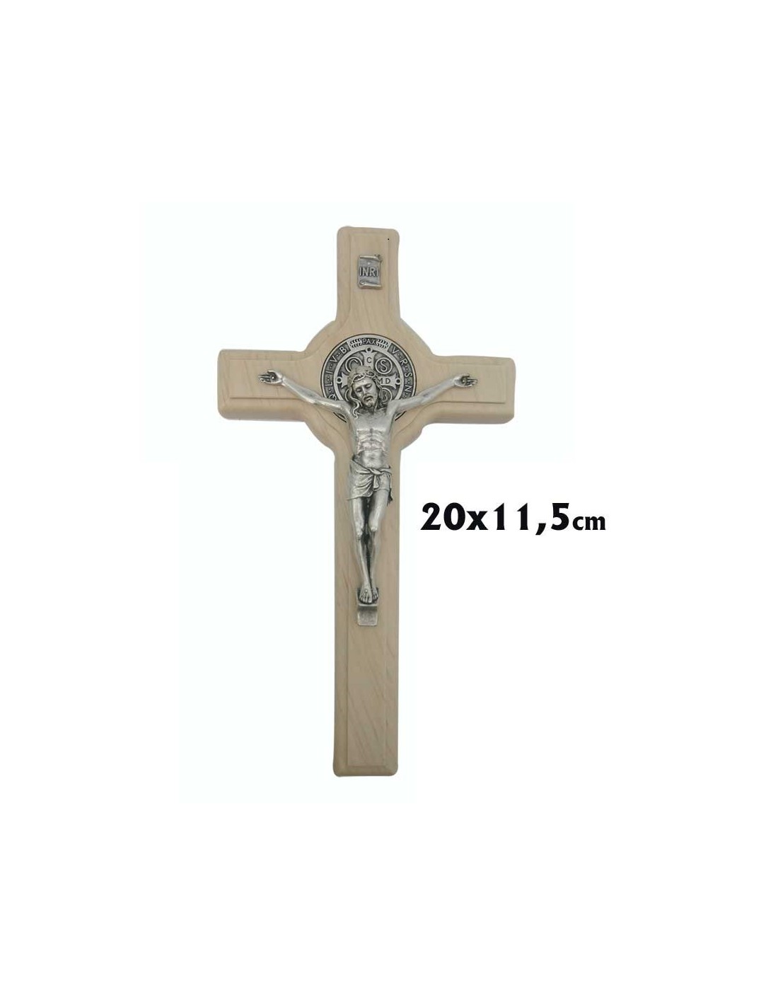Crucifijo San Benito 20Cm Madera Blanca Con Medallas En Caja
