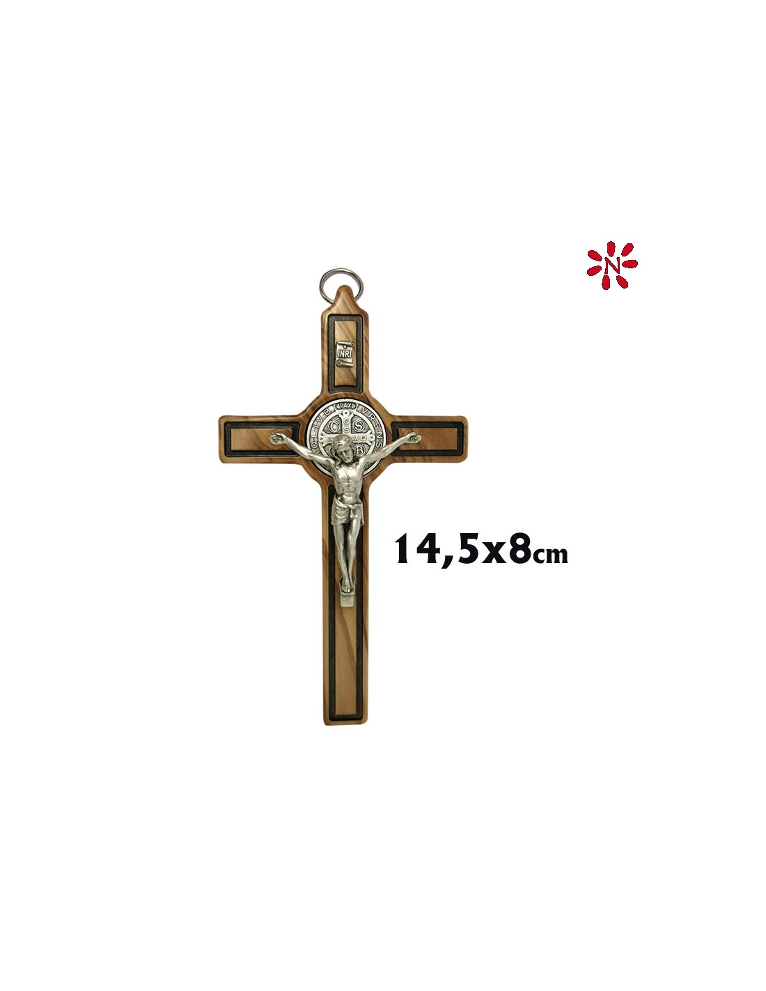 Cruz San Benito 14. 5X8cm Madera Olivo Con Medalla Y Cristo Metal