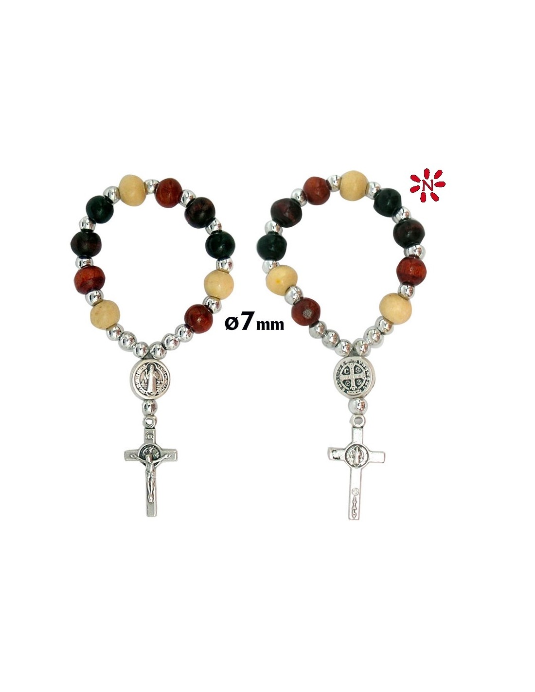 Decena San Benito Madera Varios Colores Elastico 7Mm