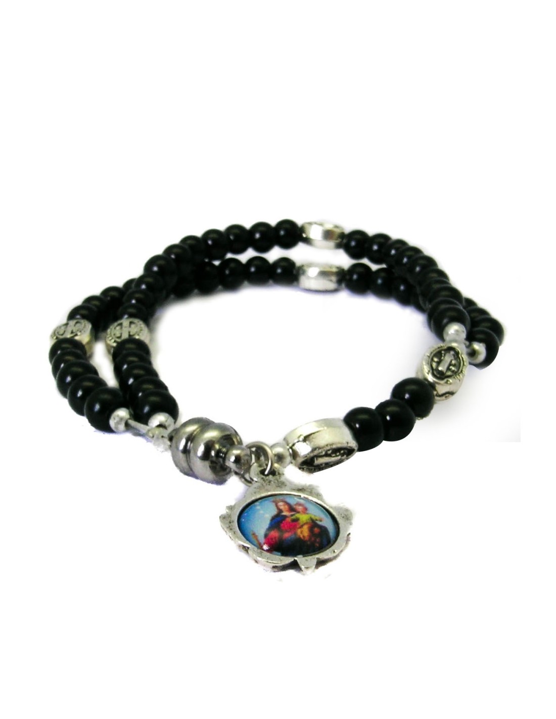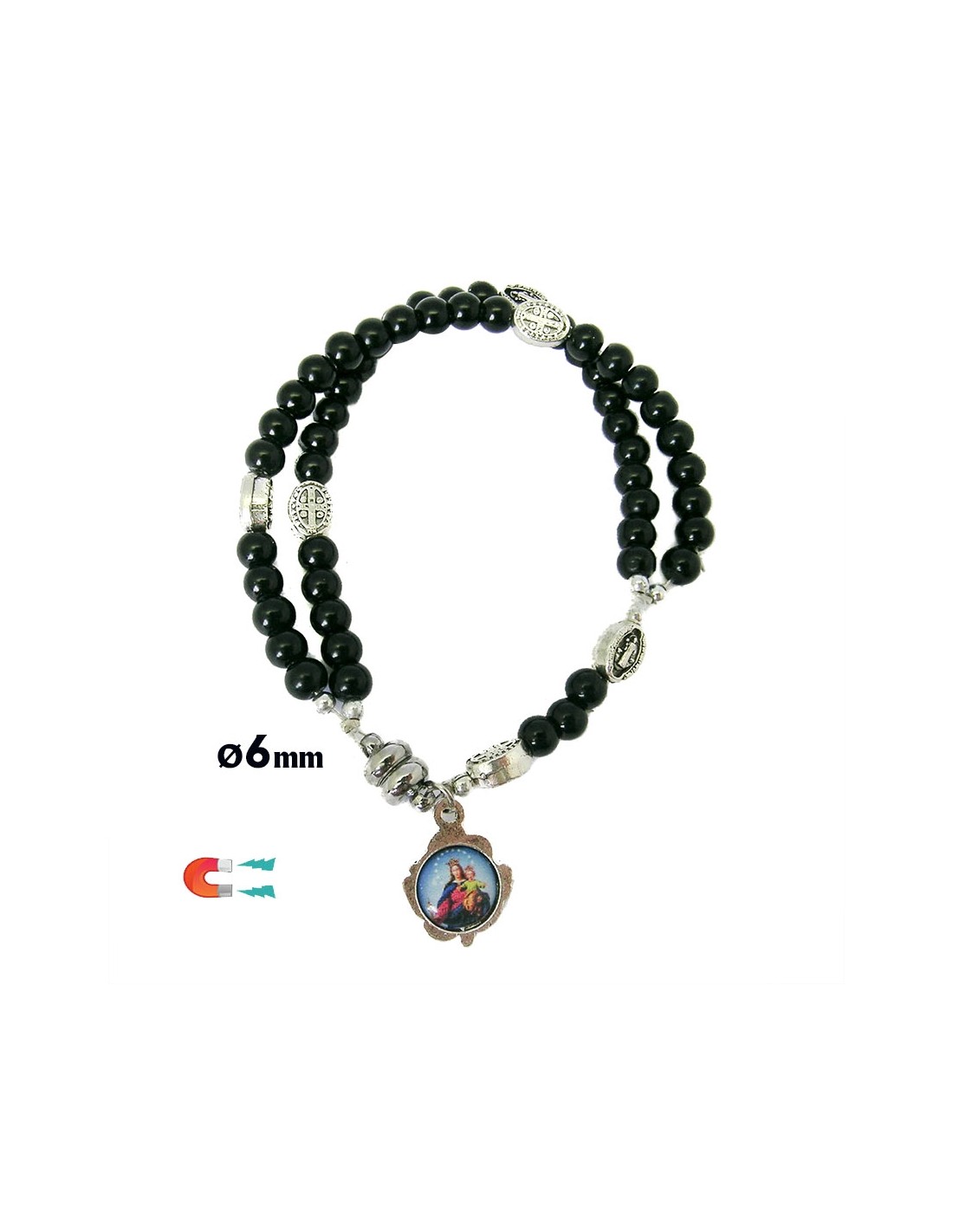 Pulsera Rosario Cristal Liso Negro 5Mm Paters Medalla San Benito Cierre Magnetico