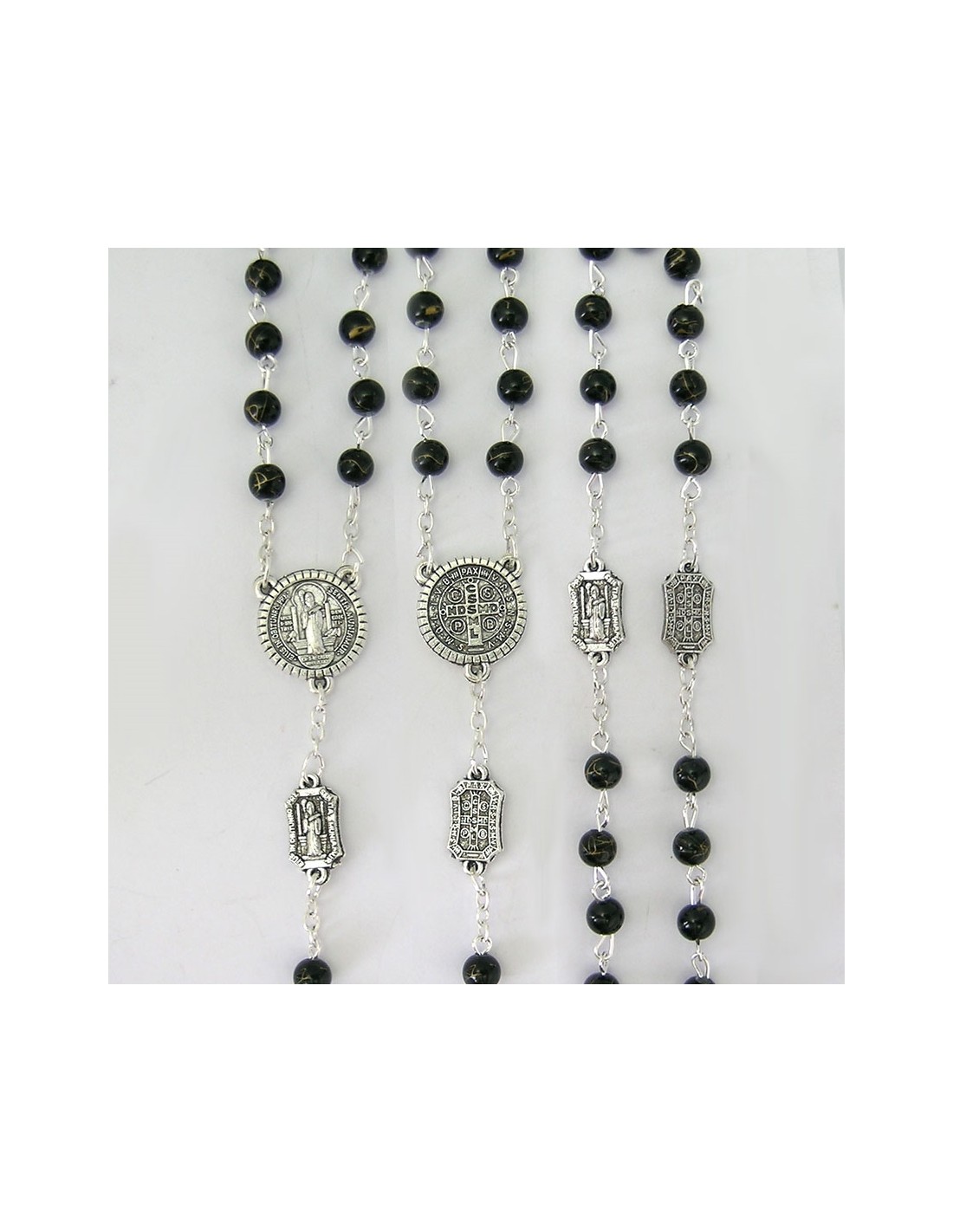 Rosario Plastico San Benito 6Mm Negro Con Hilos Dorados