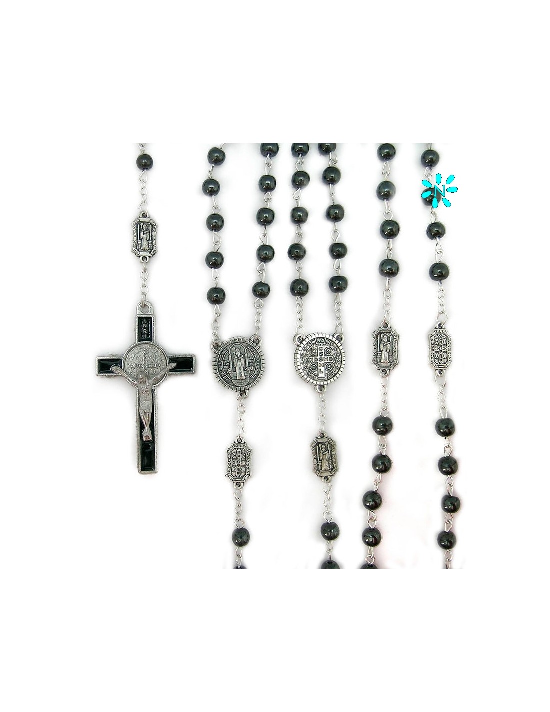 Rosario Ematite San Benito 6Mm Paters Rectangulares Y Cruz Esmaltada