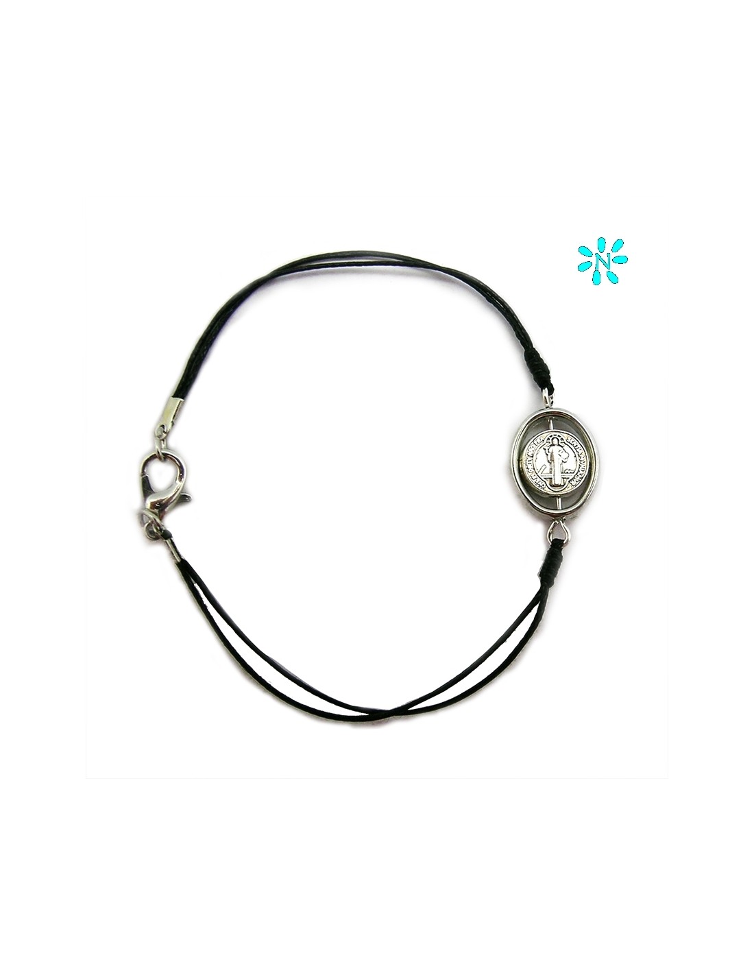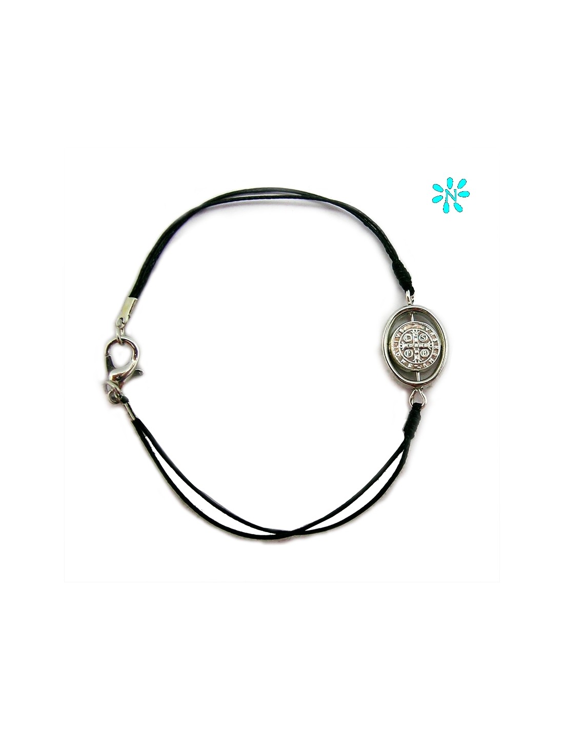 Pulsera San Benito Cordon Fino Negro Centro Giratorio