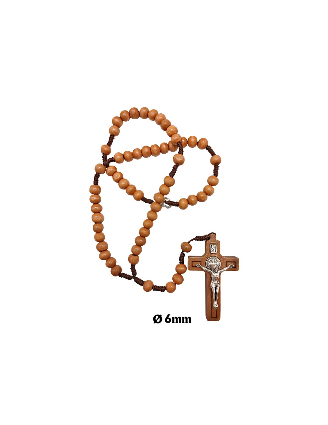 Rosario Madera Y Cuerda San Benito Bola Chata 6Mm Marron Con Cruz