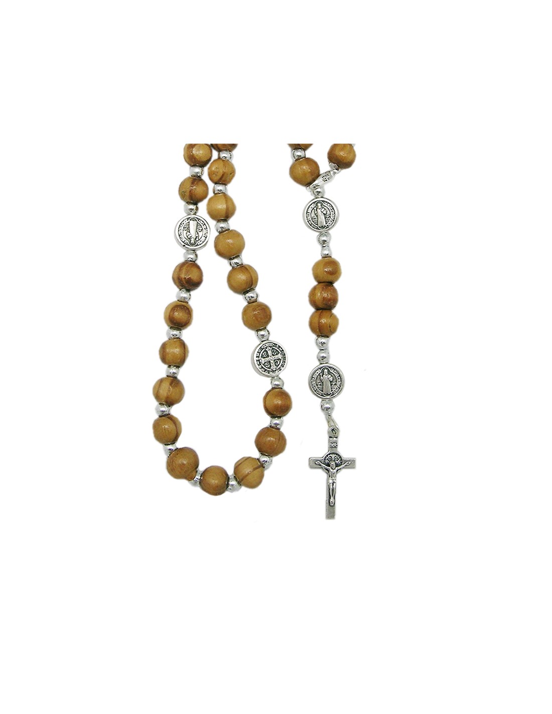 Rosario Madera San Benito 7Mm Elastico Paters Medalla Y Mosqueton