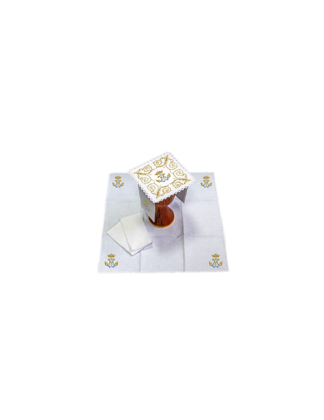 Juego De Altar Lino Bordado Mariano sdm011 Barroco con Greca Grande