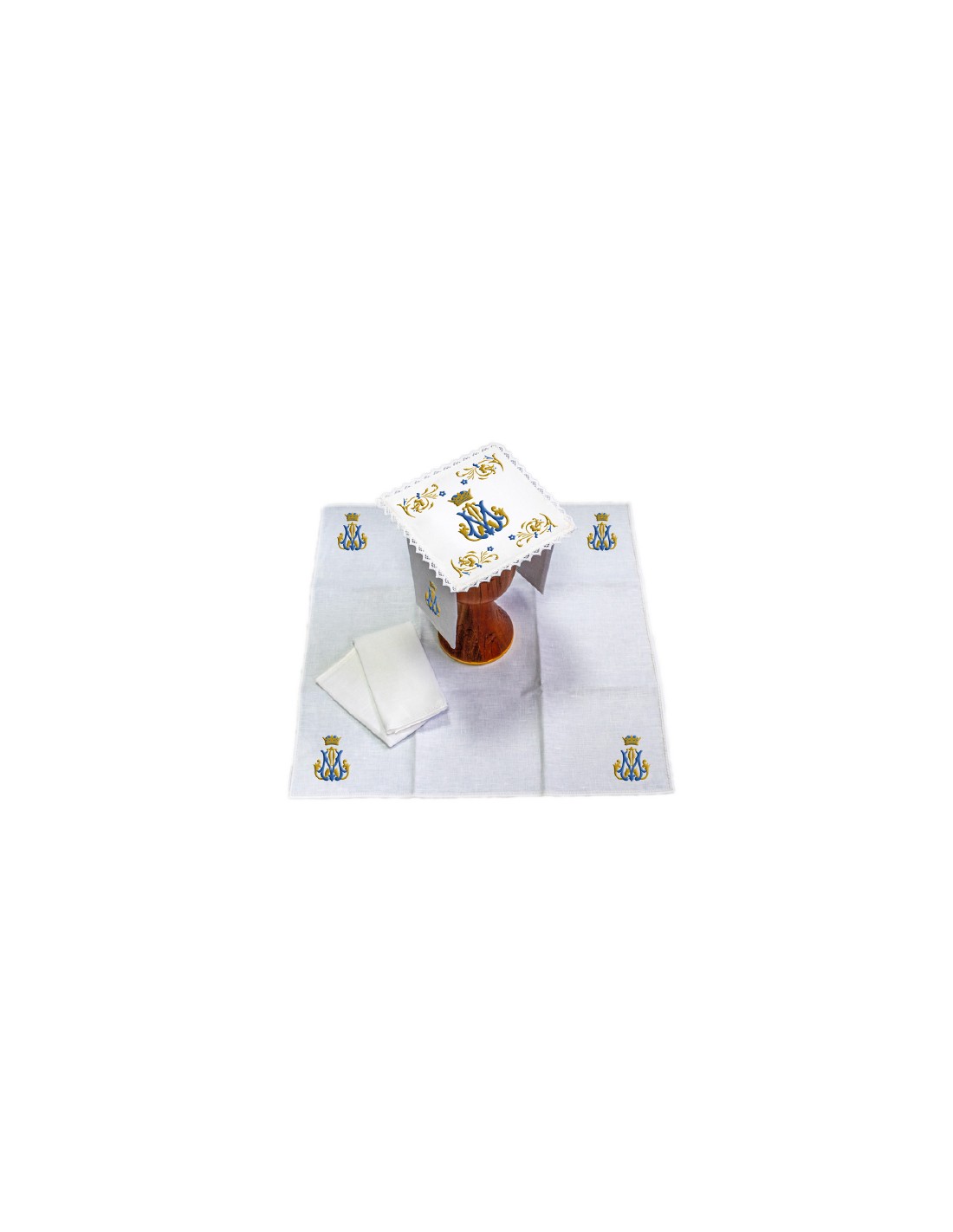 Juego De Altar Lino Bordado Mariano M Azul Sdm010 Con Corona