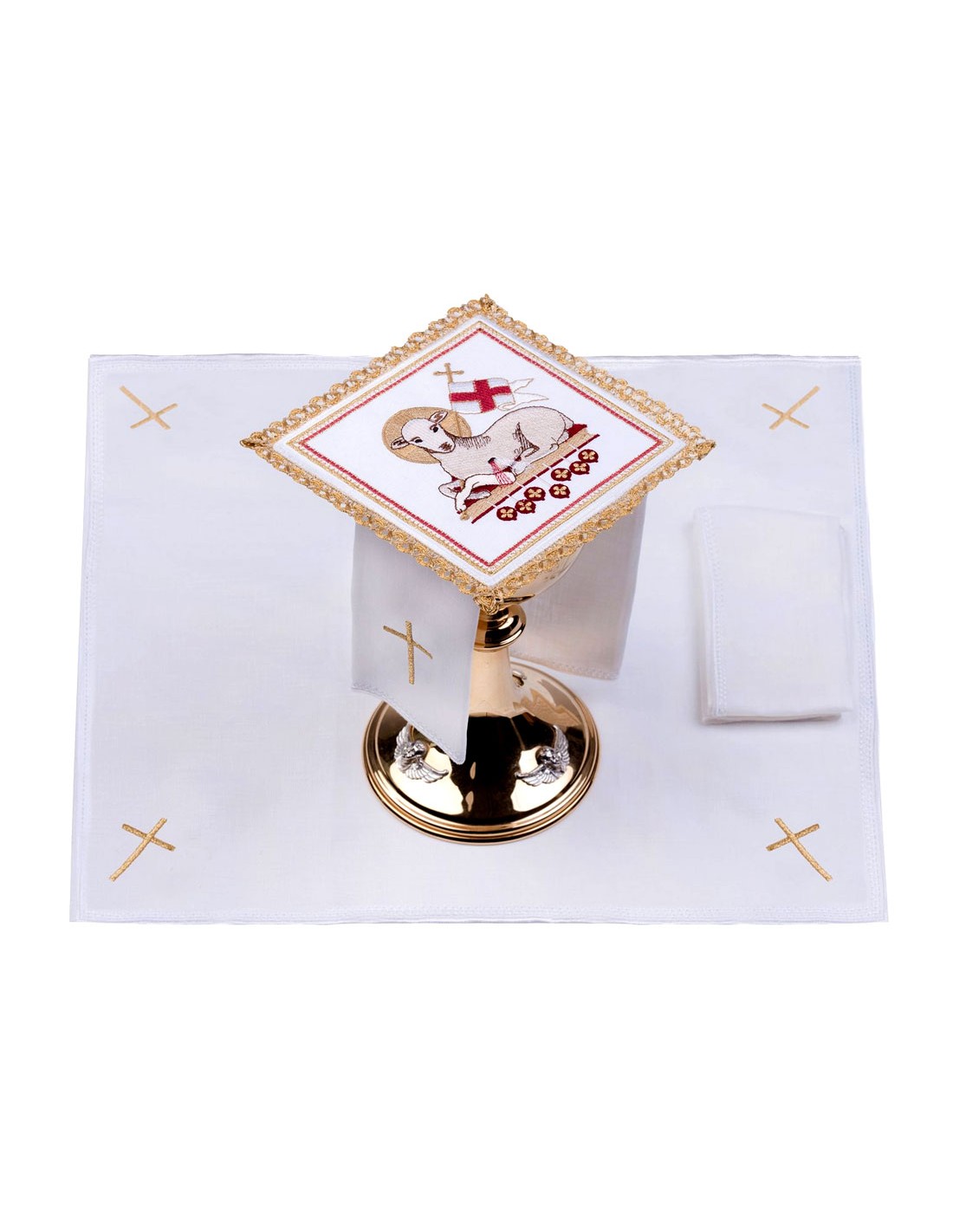 Juego De Altar Lino Cordero Bordado Cenefa Dorada 18-5015