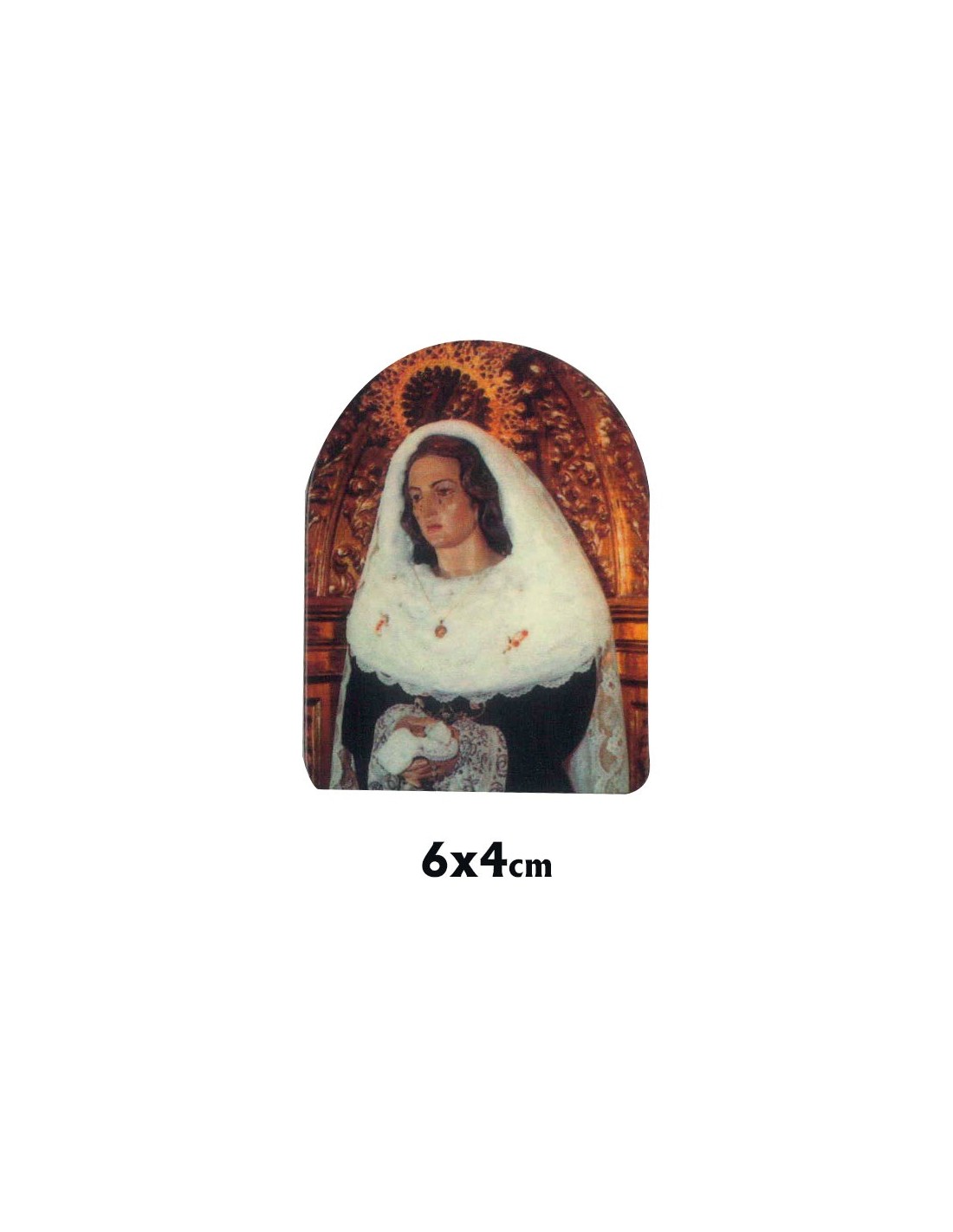 Icono Madera Estampado 6X4cm Forma Cupula Con Pie Metal Personalizado