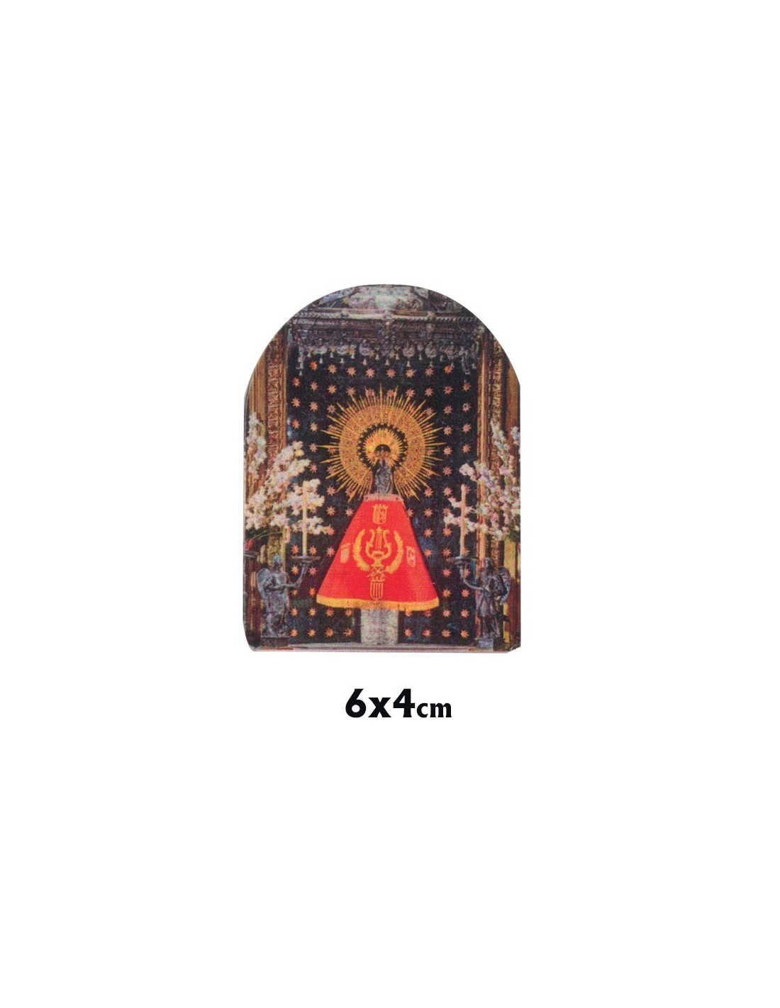 Icono Madera Estampado 6X4cm Forma Cupula Con Pie Metal Personalizado