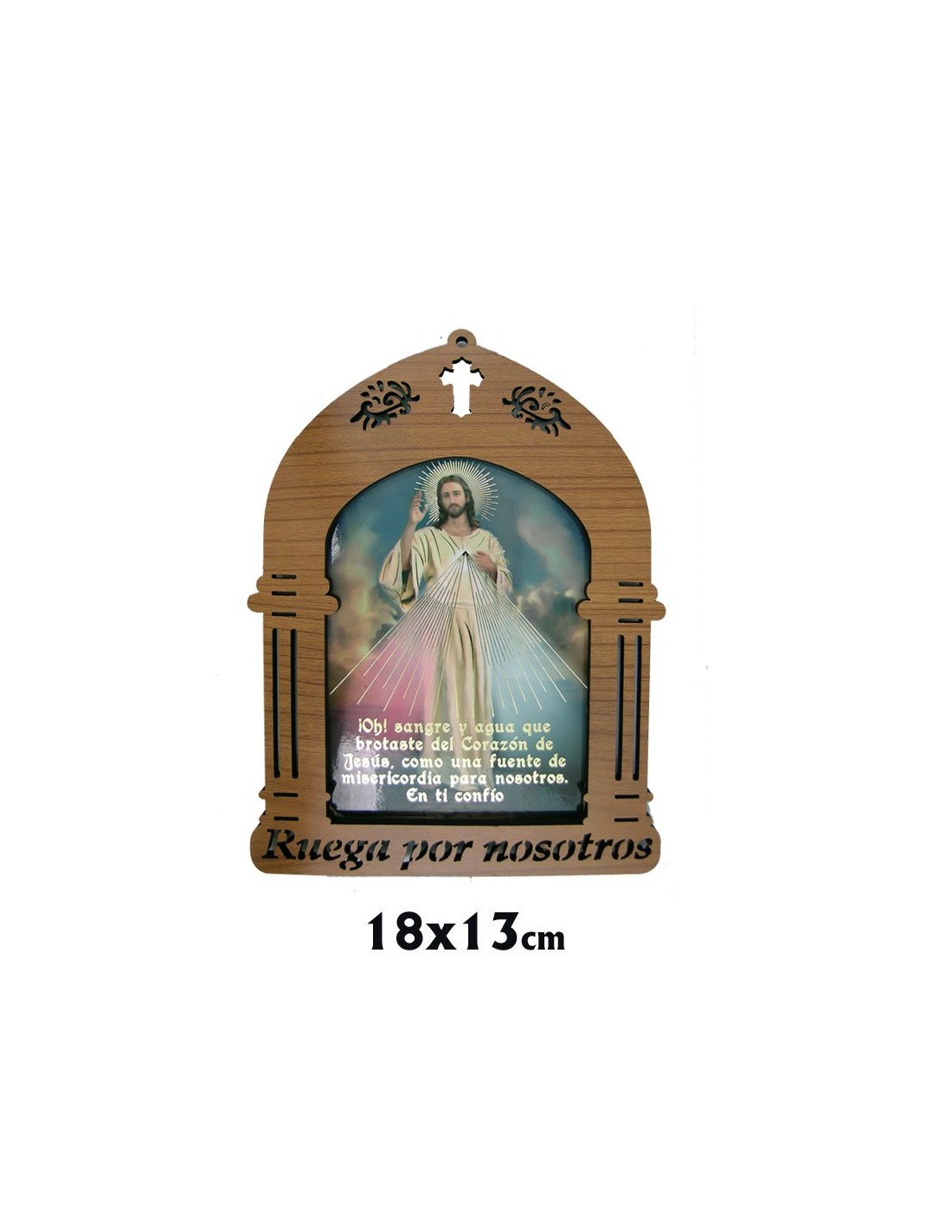 Capilla 13X18cm Jesús Misericordioso Brillo Oro Y Marco Grabado Ruega Por Nosotros