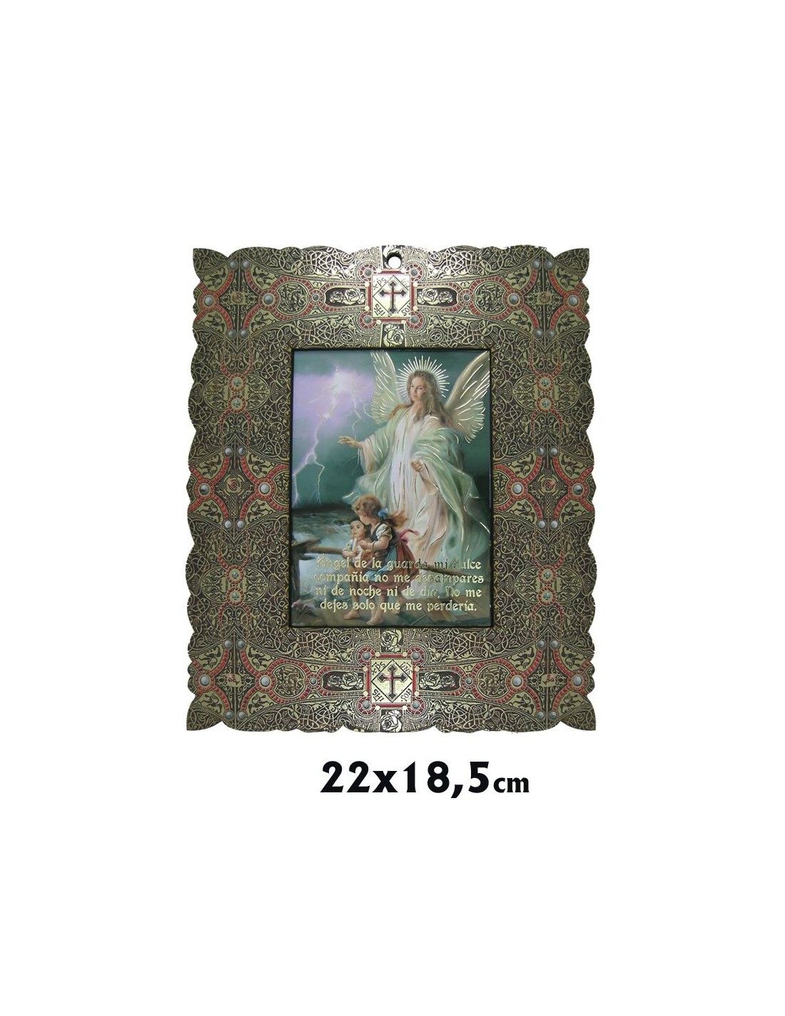 Capilla Rectangular 19X22cm Angel Guarda Brillo Oro Marco Decorado Estilo Bizantino