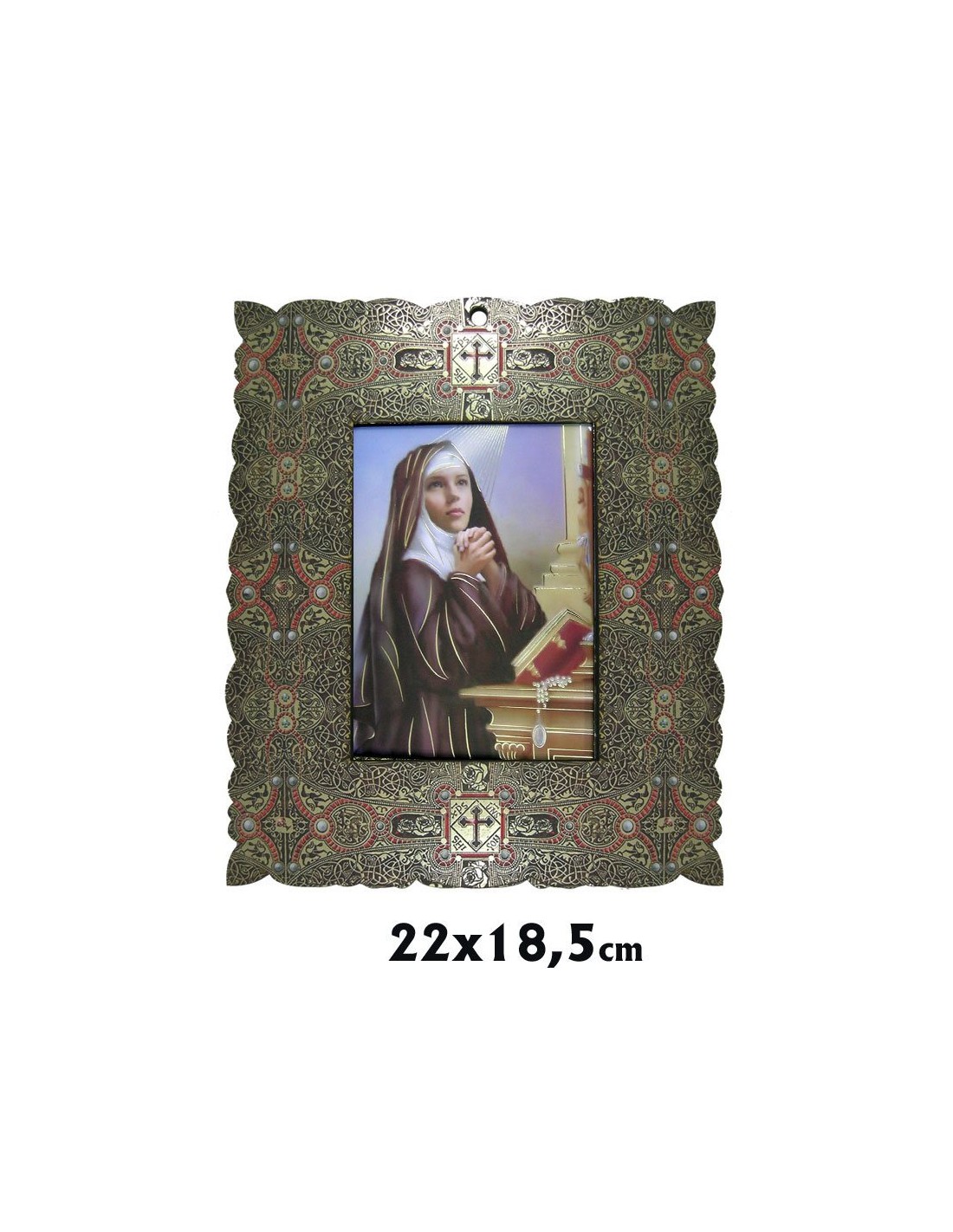 Capilla Rectangular 19X22cm Santa Rita Brillo Oro Marco Decorado Estilo Bizantino