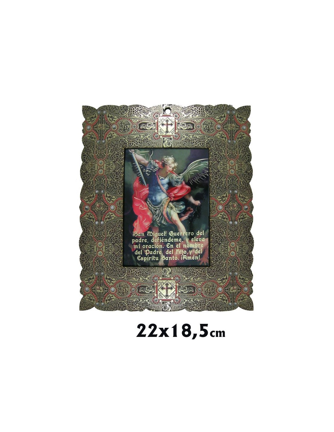 Capilla Rectangular 19X22cm San Miguel Arcangel Brillo Oro Marco Decorado Estilo Bizantino