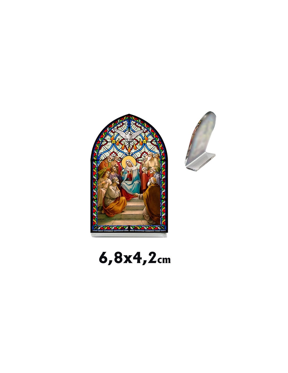 Placa Vidriera Pentecostes 6. 8x4. 2cm Con Pie Doblado Con Caja