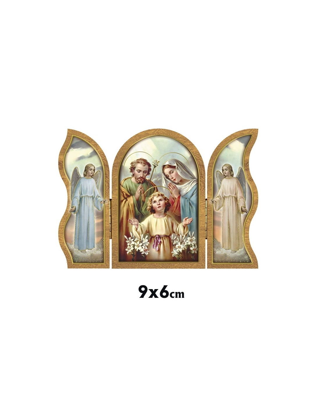 Icono Triptico Madera Sagrada Familia 9X6cm Adornos Oro Brillo Y Puertas Con Altar