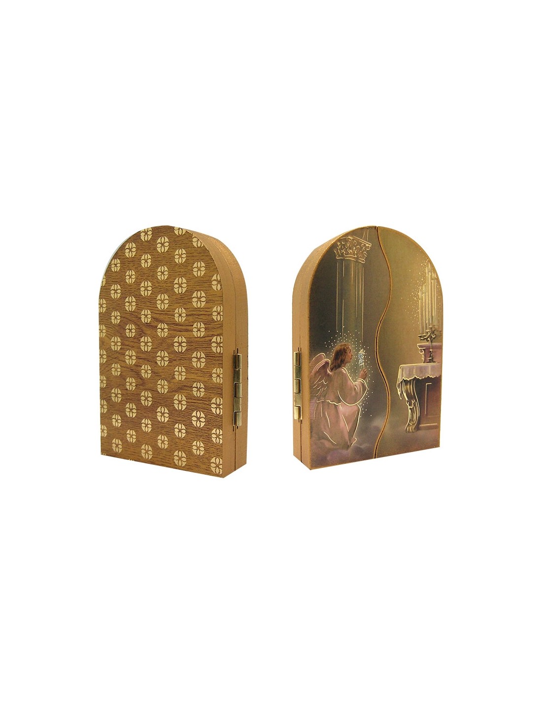 Icono Triptico Madera Sagrada Familia 9X6cm Adornos Oro Brillo Y Puertas Con Altar