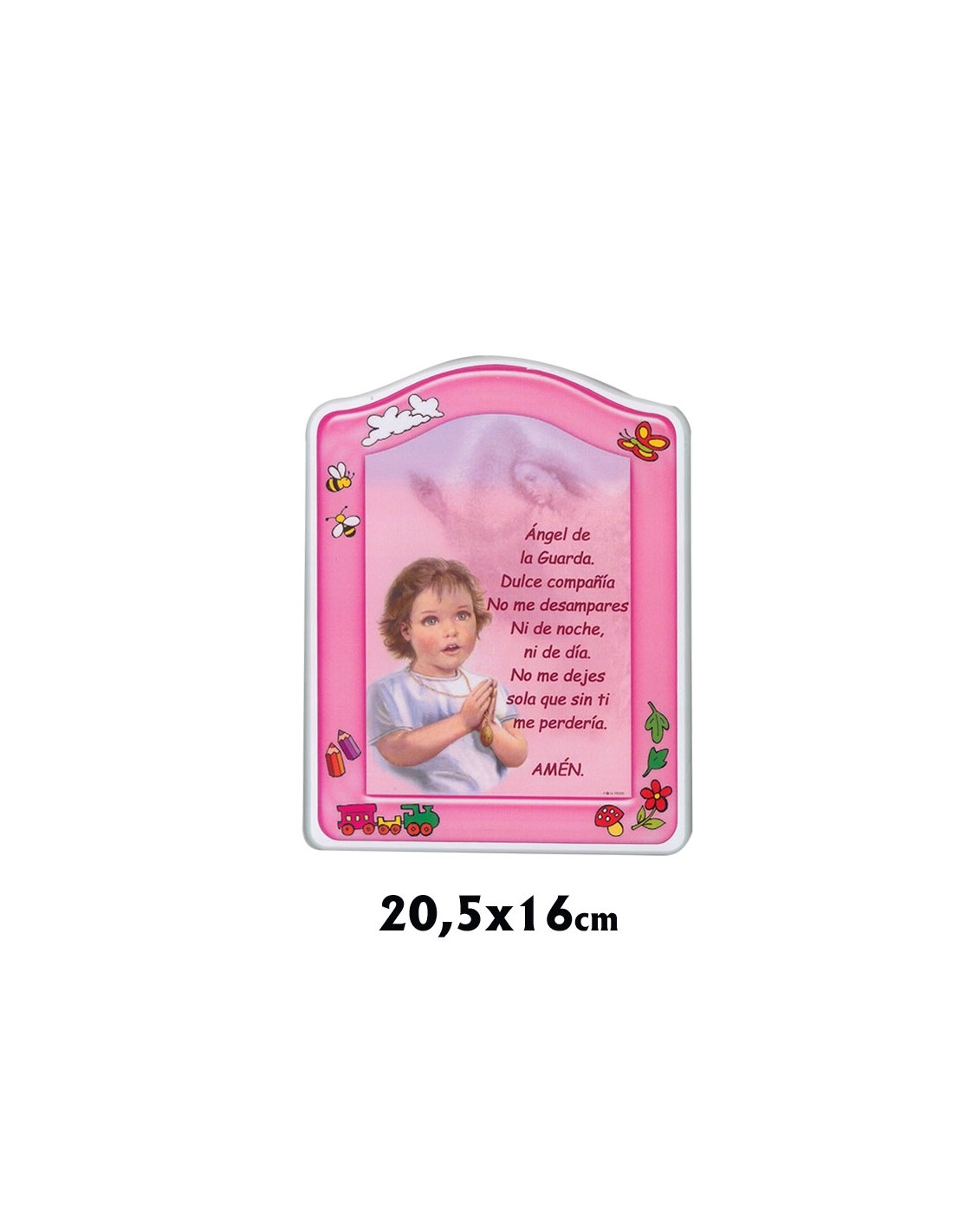 Tabla Madera Oracion Angel De La Guarda 20.5X16 Borde Blanco Fondo Rosa