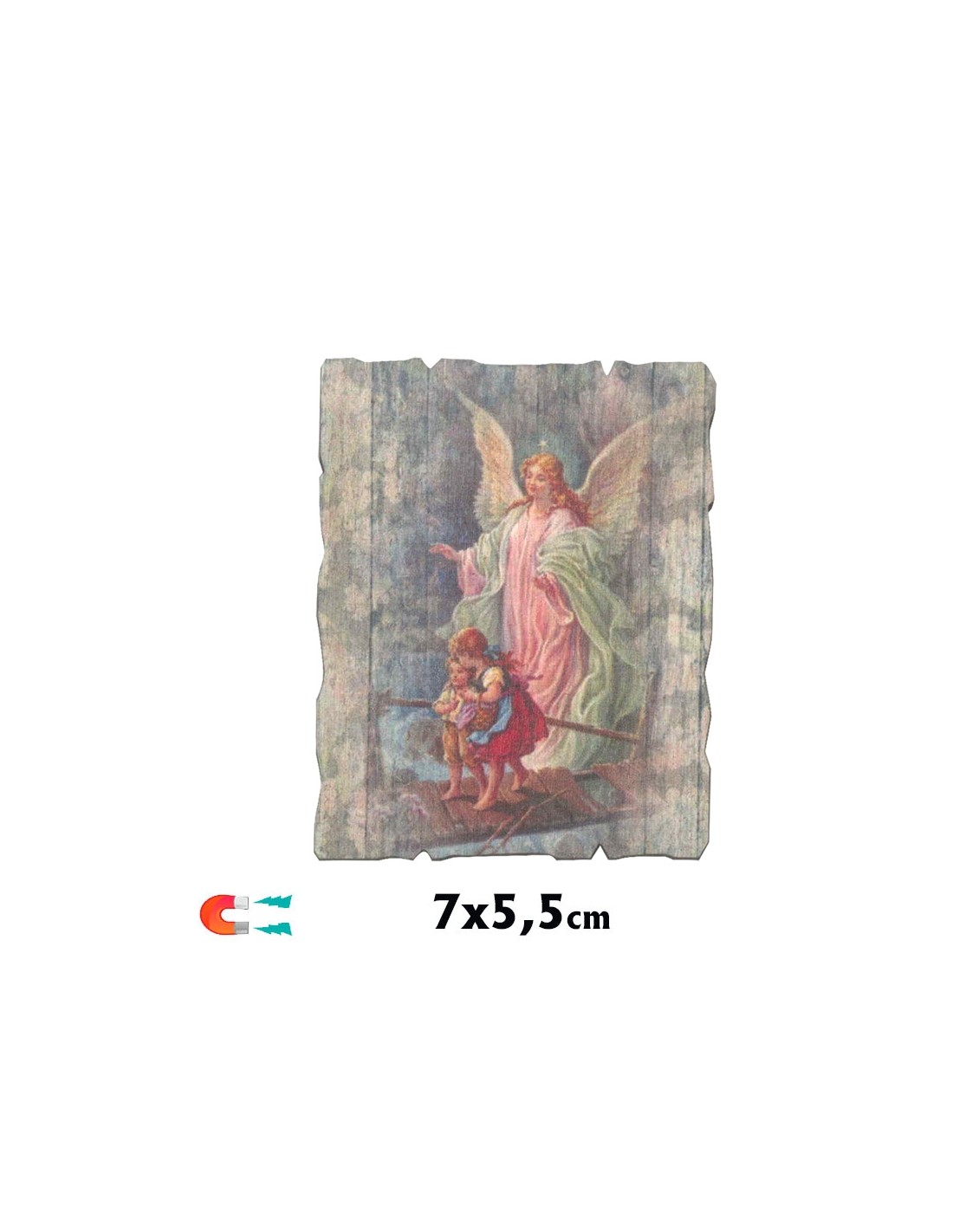 Tabla Madera 7X5. 5 Cm Angel De La Guarda Magnetico Y Con Soporte Trasero