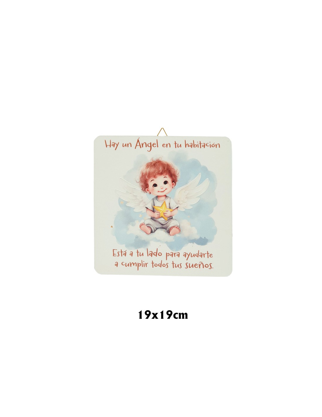 Cuadro Infantil Angelito Con Estrella 19X19cm Blanco Acabado Relieve Y Caja