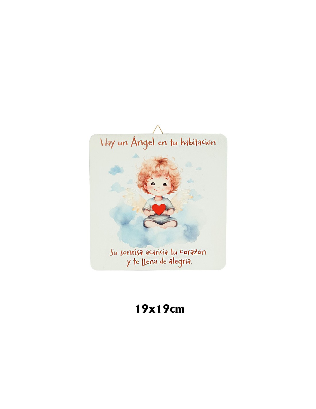 Cuadro Infantil Angelito Con Corazon 19X19cm Blanco Acabado Relieve Y Caja