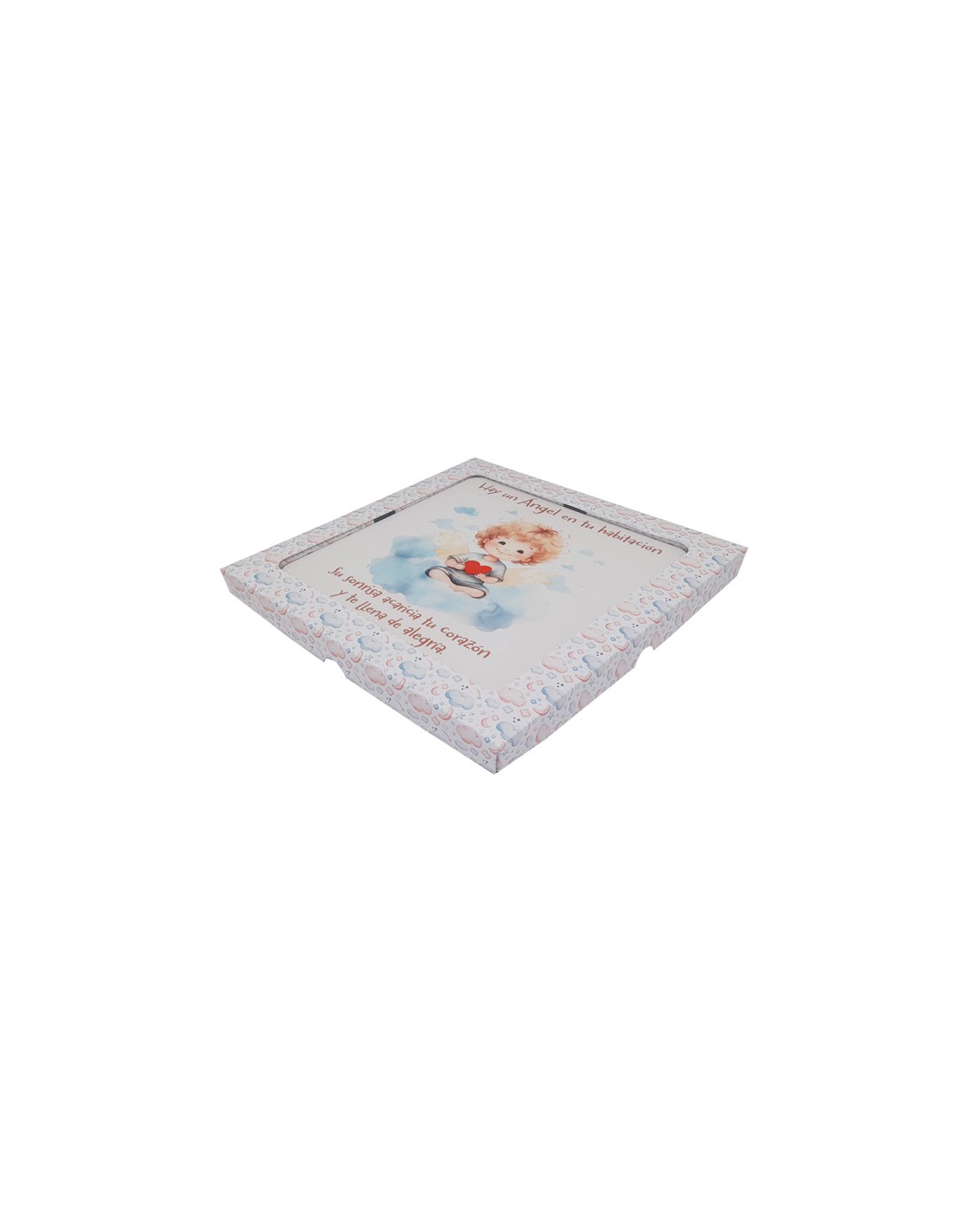 Cuadro Infantil Angelito Con Corazon 19X19cm Blanco Acabado Relieve Y Caja