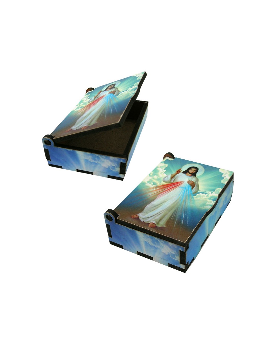 Caja Madera Serigrafiada Jesús Misericordioso 7X5x2. 5Cm Portarosario
