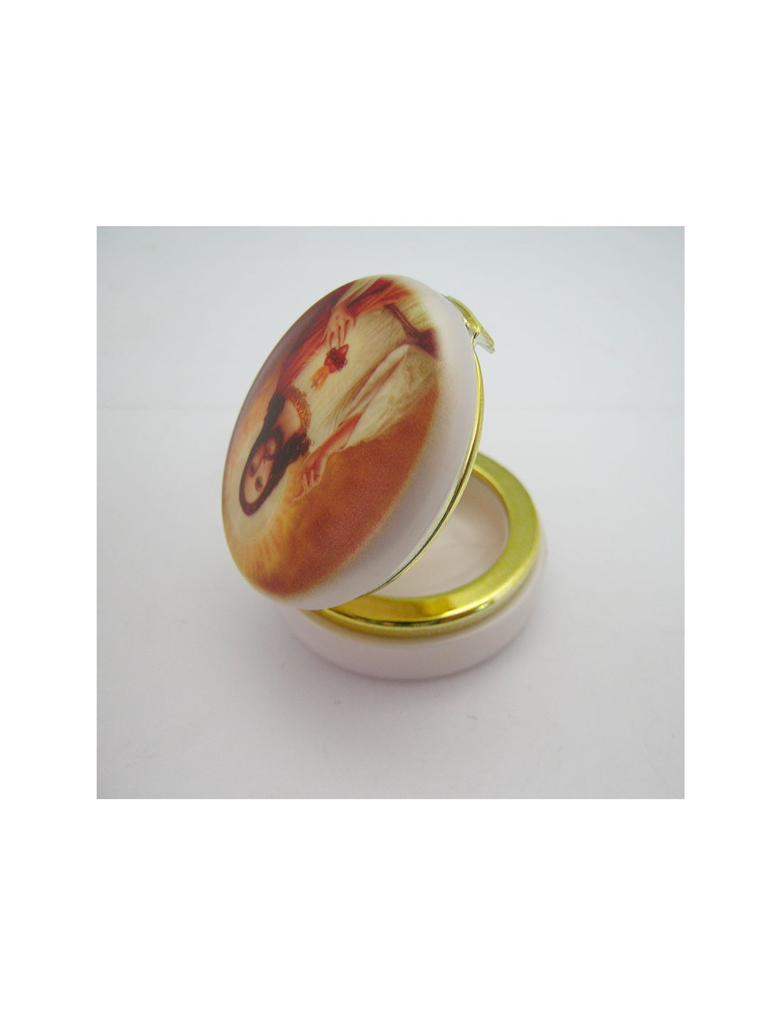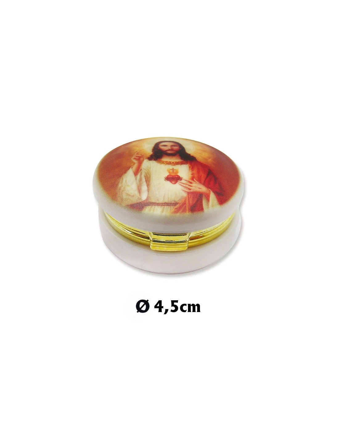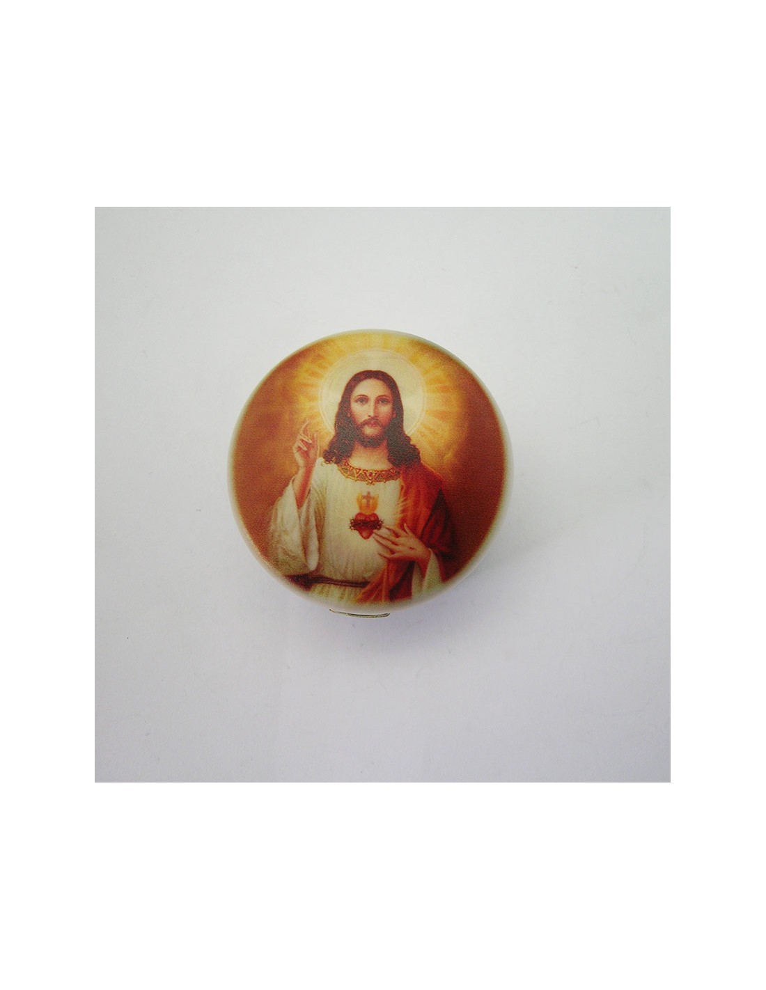 Caja Redonda Con Foto Corazon De Jesús Acabado Nacar