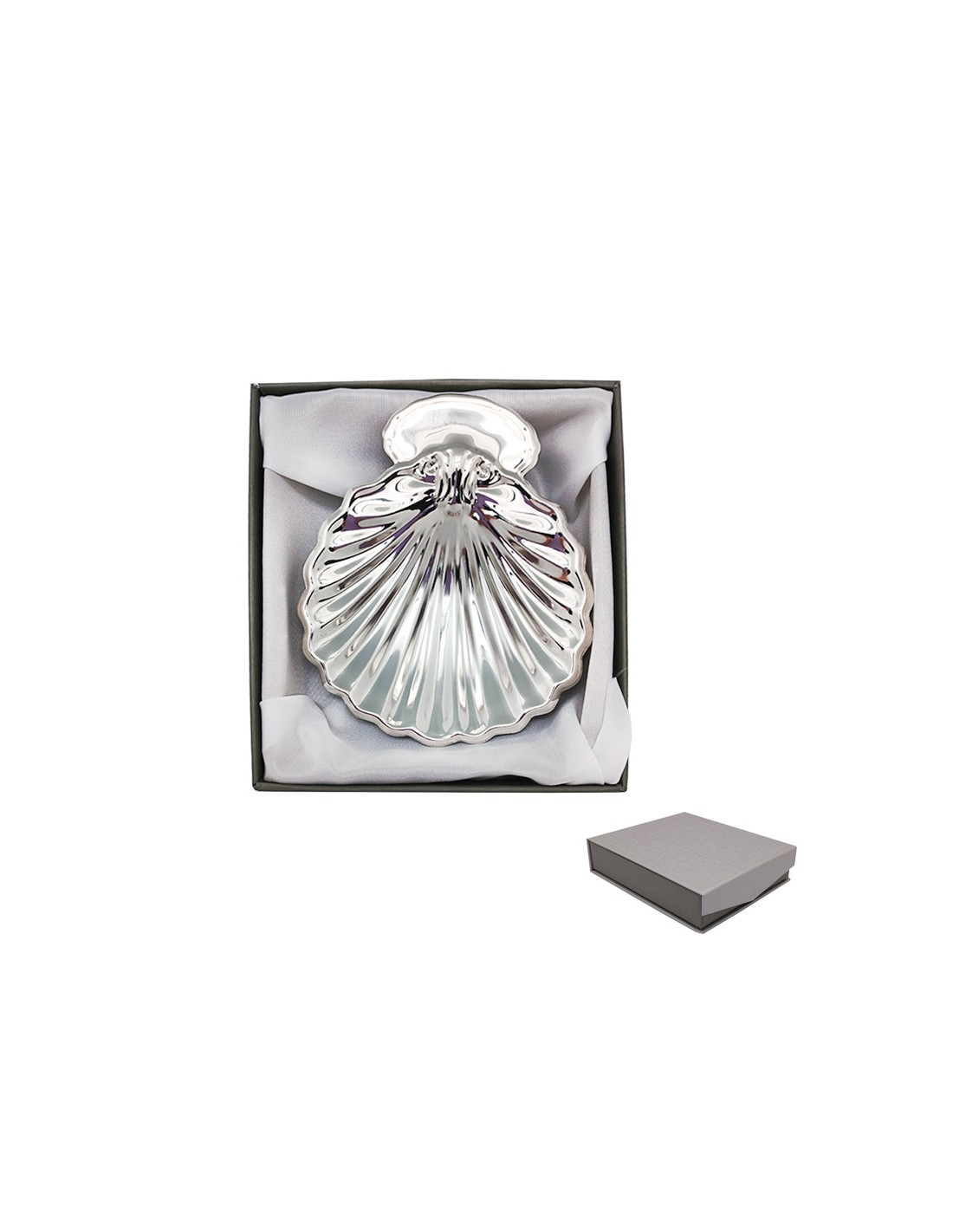 Concha Bautismo Para Grabar En Redondo Metal Plateada Con Estuche